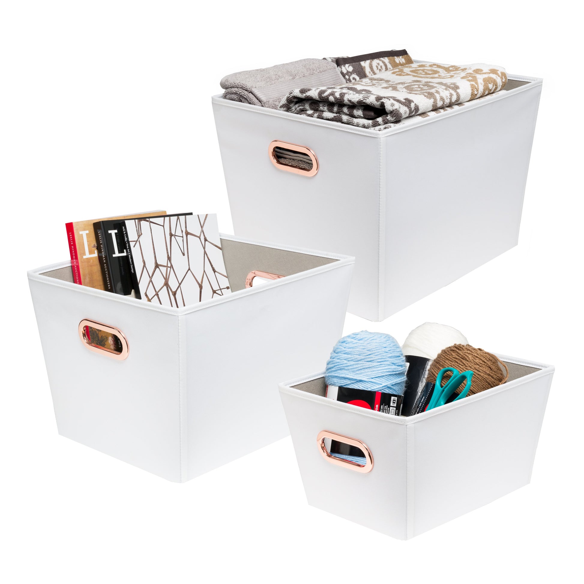 3-Piece Organizing Totes, White