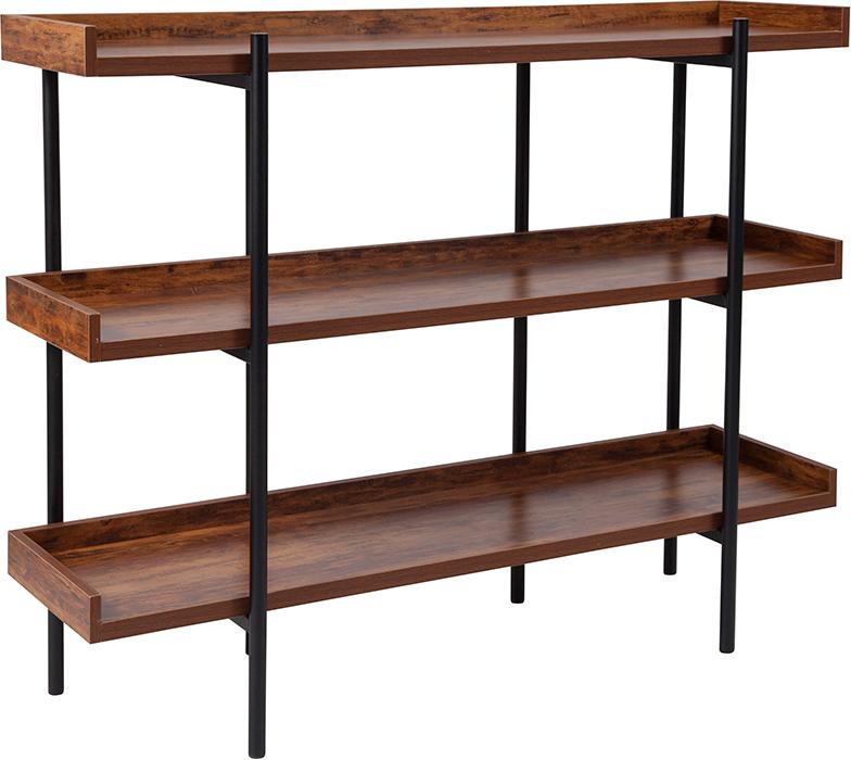 3 Shelf 35"H Storage Display Unit Bookcase with Black Metal Frame in Rustic Wood Grain Finish