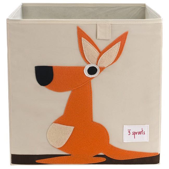 The 3 Sprouts storage box is the perfect storage solution for any room in your house. Our storage box is made from 100% polyester with stiff sides reinforced by cardboard, allowing the box to always stand at attention when you need it but fold away flat when you don't. Its unique square shape fits perfectly into many cubed shelving units. Each box has the signature 3 Sprouts bright, eco-spun felt applique. Made in China.