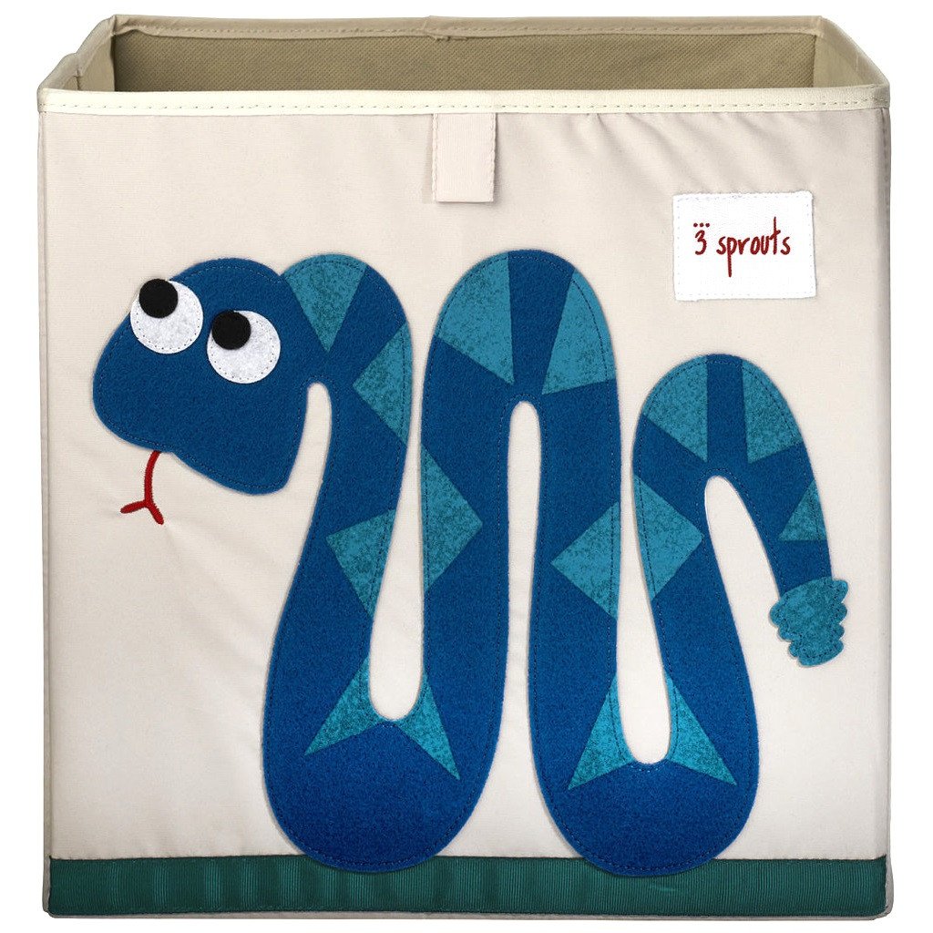 The 3 Sprouts storage box is the perfect storage solution for any room in your house. Our storage box is made from 100% polyester with stiff sides reinforced by cardboard, allowing the box to always stand at attention when you need it but fold away flat when you don't. Its unique square shape fits perfectly into many cubed shelving units. Each box has the signature 3 Sprouts bright, eco-spun felt applique. Made in China.