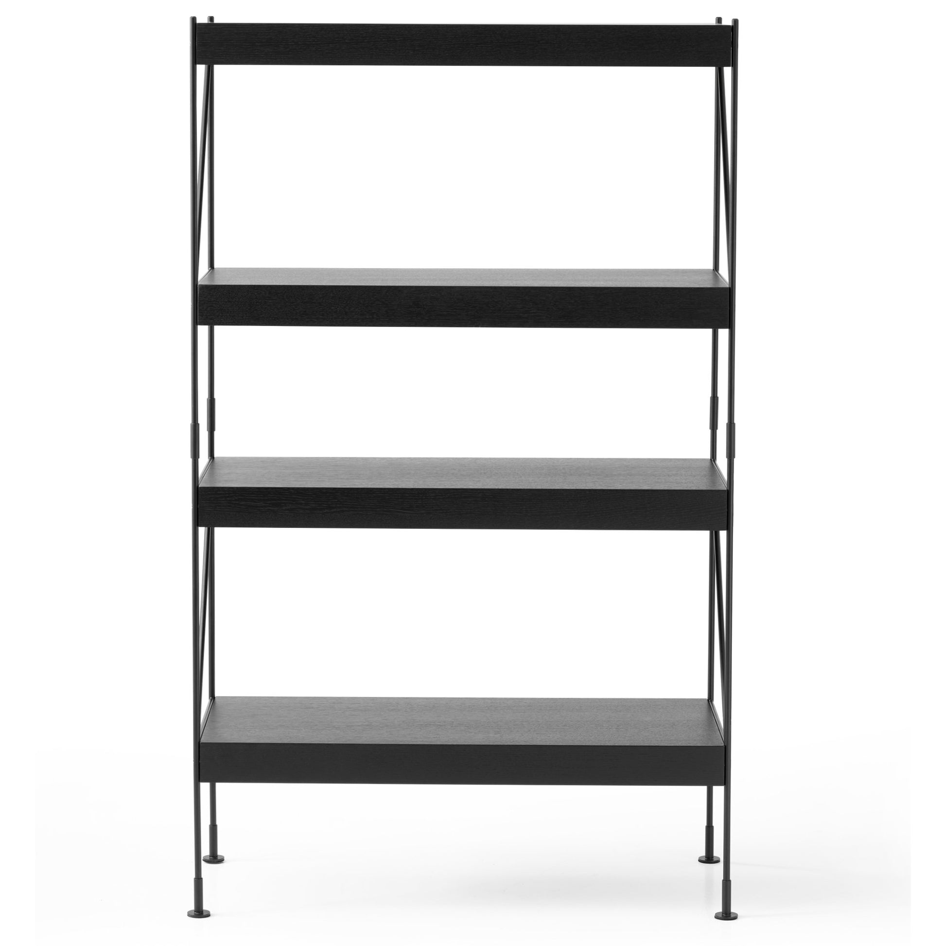 The Frame is made from a beautiful black powder coated steel while the Shelves are a black painted oak veneer with a strong MDF core.