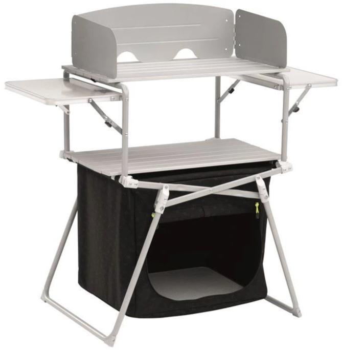 Enjoy a dedicated space for cooking and preparing food with the smart Outwell Montego Kitchen Table. Set up your stove on the aluminium top and use the windshield to protect from the elements.