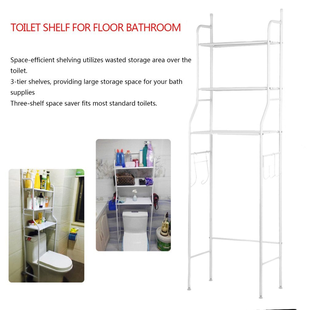 Space saver make every inch bathroom keep organized possible with this tube design attractive functional features iron tubing designed shape made fit over around toilet space-efficient shelving utilizes wasted storage area -tier shelves providing large bath supplies three-shelf fits most standard toilets it's great place store towels paper toiletries candles other essentials organize tall legs lift featured tank them hold extra rolls house plants soap any items you'd specifications item size package distance each shelf tier color white material included tiers please notes allow slight dimension difference due different manual measurement monitor light effect actual might slightly showed pictures thank