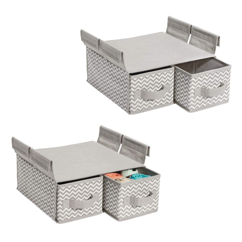 mDesign Soft Fabric Over Closet Shelving Hanging Storage Organizer with 2 Removable Drawers for Closets in Bedrooms, Hallway, Entryway, Mudroom - Chevron Zig Zag Print - 2 Pack - Taupe/Natural