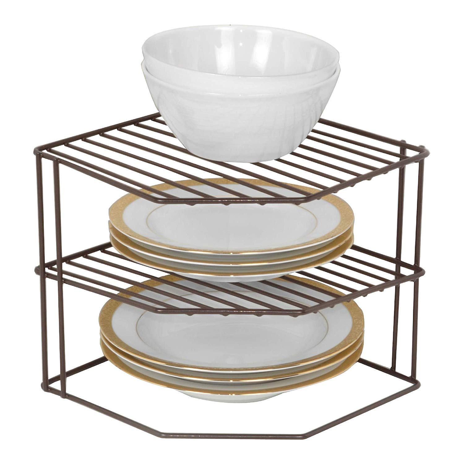 Smart Design 3-Tier Kitchen Corner Shelf Rack - Steel Metal Frame - Rust Resistant Finish - Cups, Dishes, Cabinet & Pantry Organization - Kitchen (9 x 8 Inch) [Bronze]
