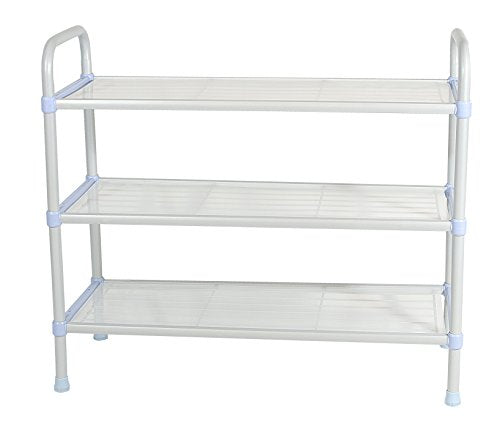 Tons of Shoe Storage and Space Saving Solutions! Are you tired of digging through a pile of mismatched shoes to find the right pair for the day Do you find yourself kicking off your shoes when you come home, only for them to do nothing but clutter up what should be your cozy living space De-clutter and relax with Wellmax - bringing you the best value shoe shelf and tiered storage solution you'll find on Amazon! Extra Easy Assembly in Seconds Imagine never having to deal with time-consuming screws, bolts, tools and complicated assembly instructions. Our shoe organizer is engineered for instant, easy manual assembly by anybody anywhere. Durable High Quality Design Forget about cheap, weak plastic storing shelves that are destined to collapse with any serious use. Wellmax's storage organizer is manufactured with a durable steel frame & shelving plus strong ABS connector pieces. Start with Three & Keep Stacking! Each shoe rack unit comes with three tiers, but your storage options don't have to end there. Our racks are designed to stack one on top of another for endless space-saving potential. Start with 3 and keep adding as your needs grow! Dimensions 22.8" (H) x 10.2" (W) x 26.3" (L) 45 lb. Weight Capacity Included: