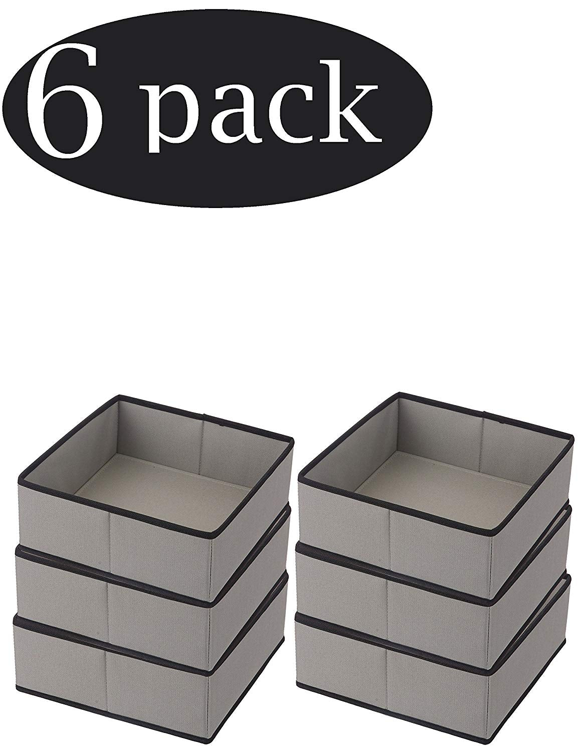 YBM HOME Fabric Closet/Dresser Drawer Storage Foldable,Organizer, Cube Basket containers Bin Underwear, Socks, Bras, Tights, Scarves,Ties Leggings Lingerie Gray Black Trim 2451-6 (6, Large)