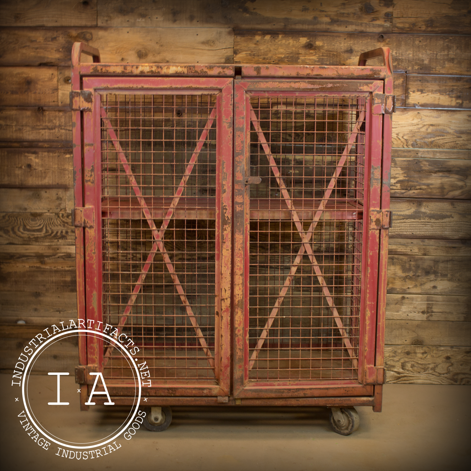 Vintage Industrial Tradewind Discount Drugs Storage Cage Shelf Rolling Shelving Red Locker