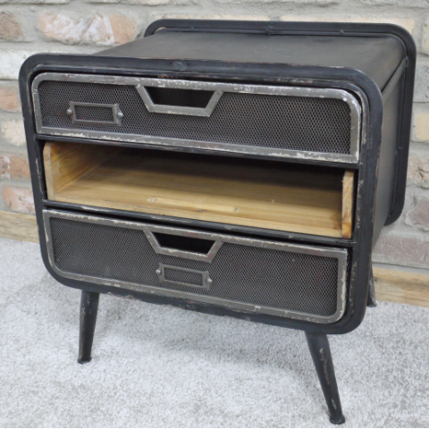 This quirky cabinet has one sliding wooden and two metal drawers, it would make an ideal bedside table or lamp table in a lounge or hallway... or as a useful bit of furniture in a home office.