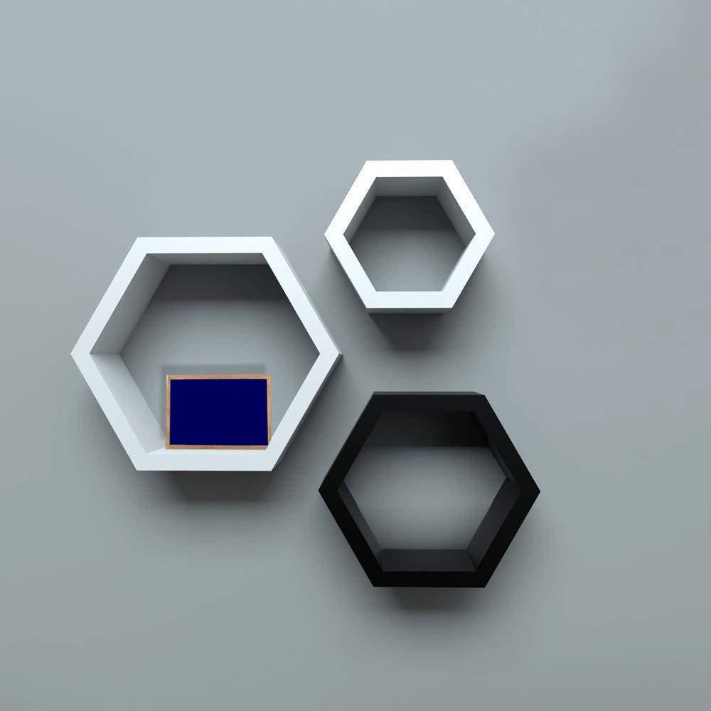 Wall Shelf Rack Set of 3 Hexagon Shape Storage Wall Shelves for Home - (Black & White)