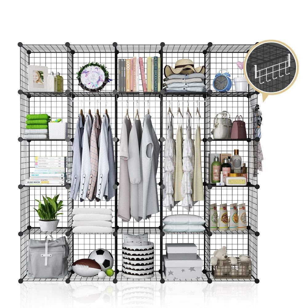 YOZO Modular Wire Cube Storage Wardrobe Closet Organizer Metal Rack Book Shelf MultiFuncation Shelving Unit, 25 Cubes, Depth 14 inches, Black